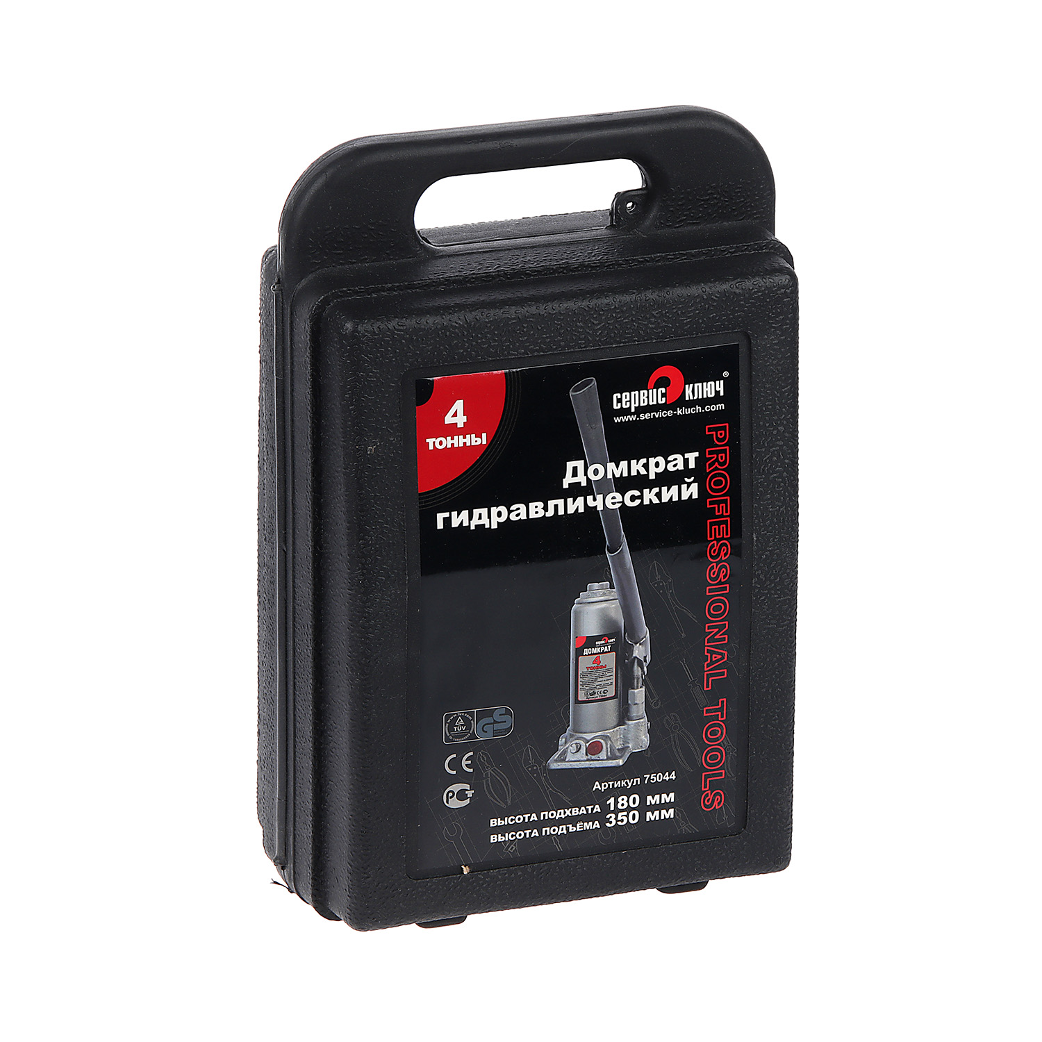 Домкрат гидравлический бутылочный 4т высота подъема180-350 (кейс) (75044) СЕРВИС КЛЮЧ *1/6