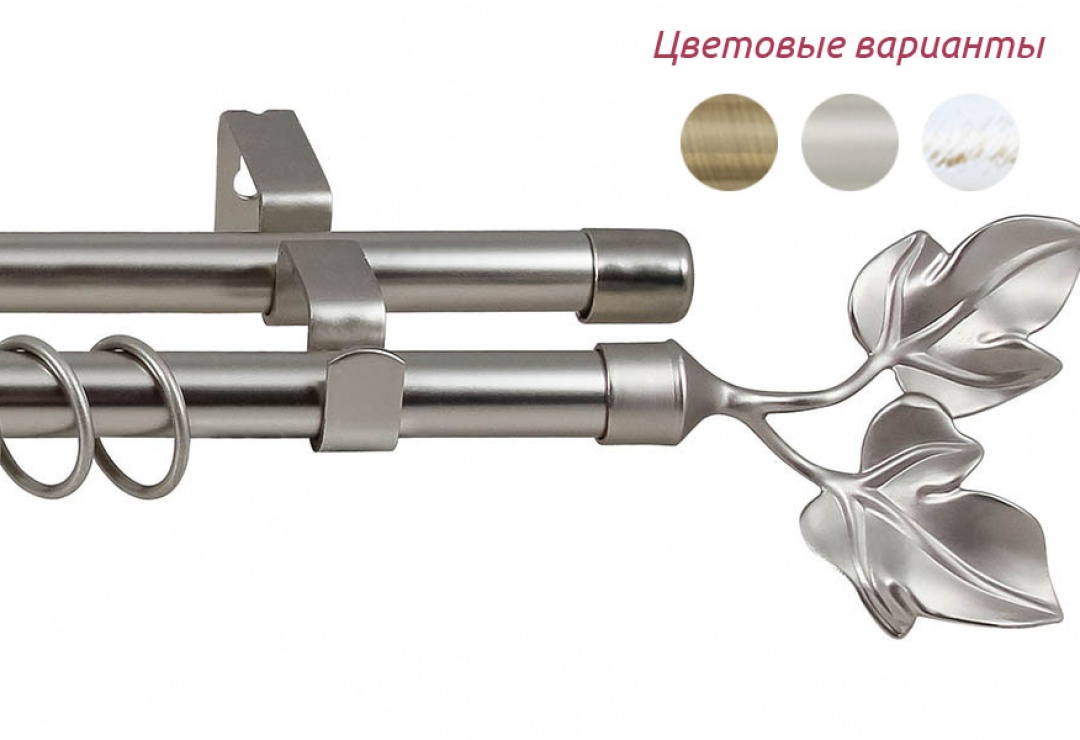 Карниз кованый раздвижной d16/19мм 2-рядный Серебро матовое, наконечники Лист 1,6-3,0 Легранд*1