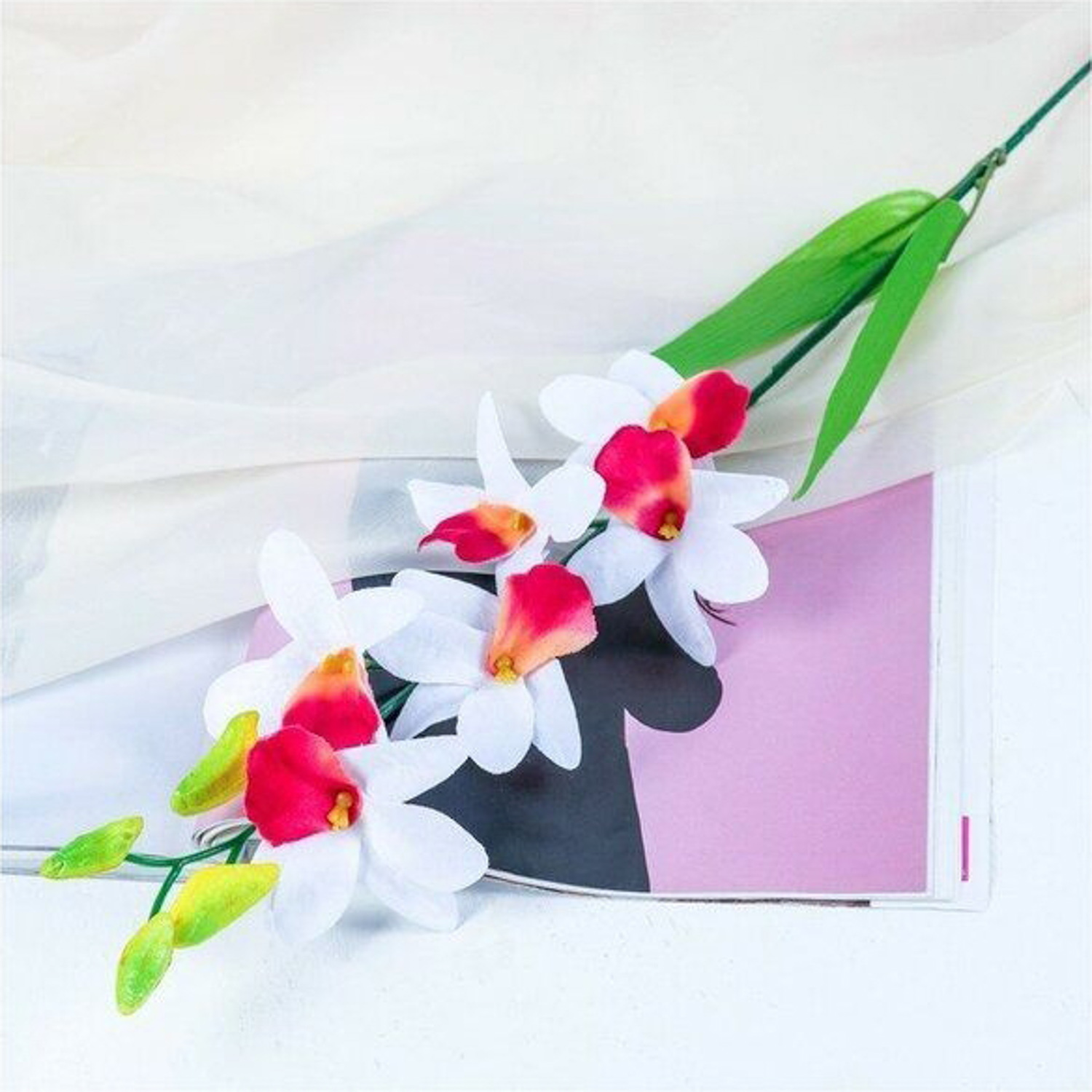 цветы искусственные орхидея Дендробиум 70 см белая 701714