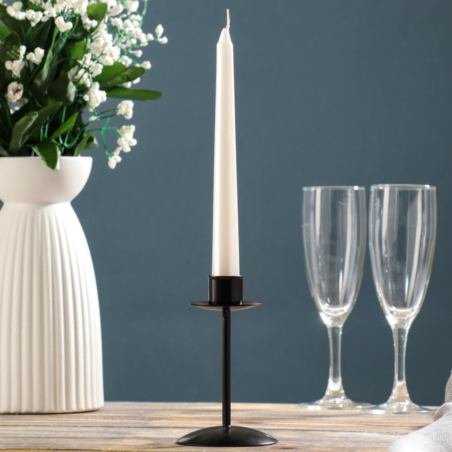 Подсвечник гармонично дополнит антураж любого помещения или станет интересным аксессуаром для романтичной фотосессии.Подставка для свечей изготавливается из металла - материал не выделяет вредных веществ при нагревании и не портится при длительном использовании.Свечи в подсвечниках можно разместить на любой поверхности, уменьшив риск порчи мебели или скатерти воском, а металлическая иголка надежно закрепит источник света.