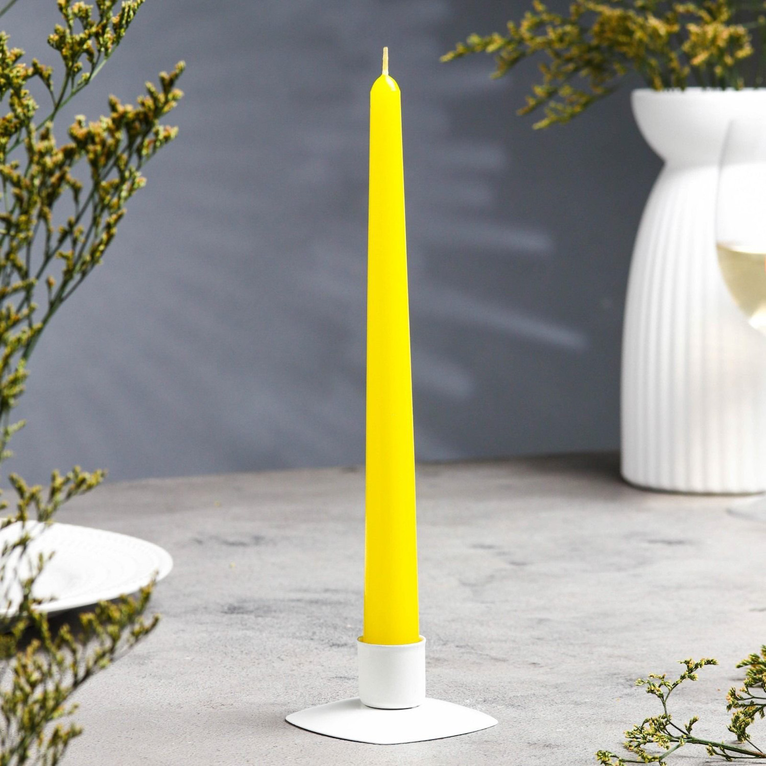 Свеча античная, 2,3х 24,5 см, 5 ч, 55 г, жёлтая 1575388