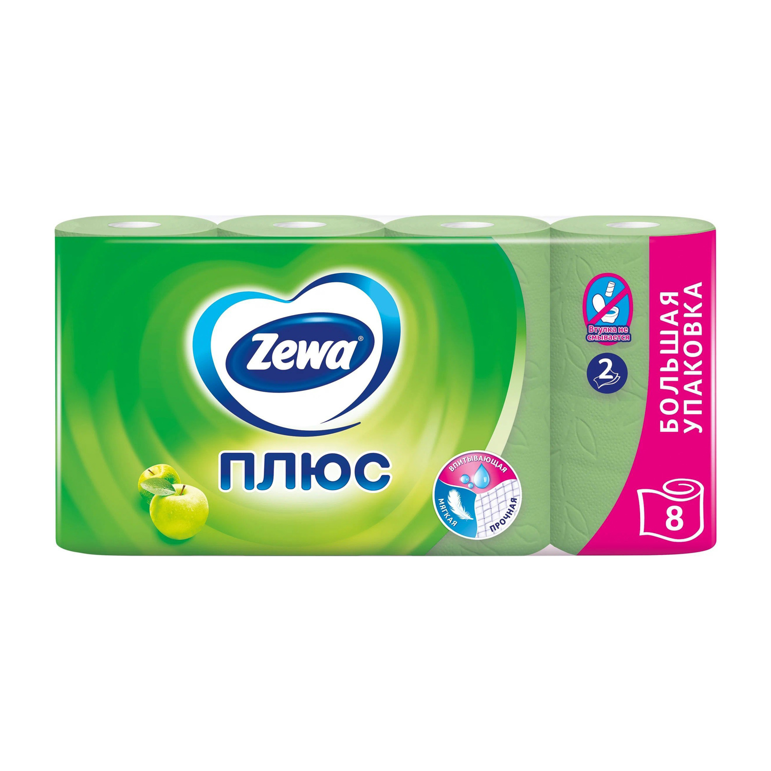Бумага туалетная ЗЕВА Плюс 2сл 8рул яблоко*12