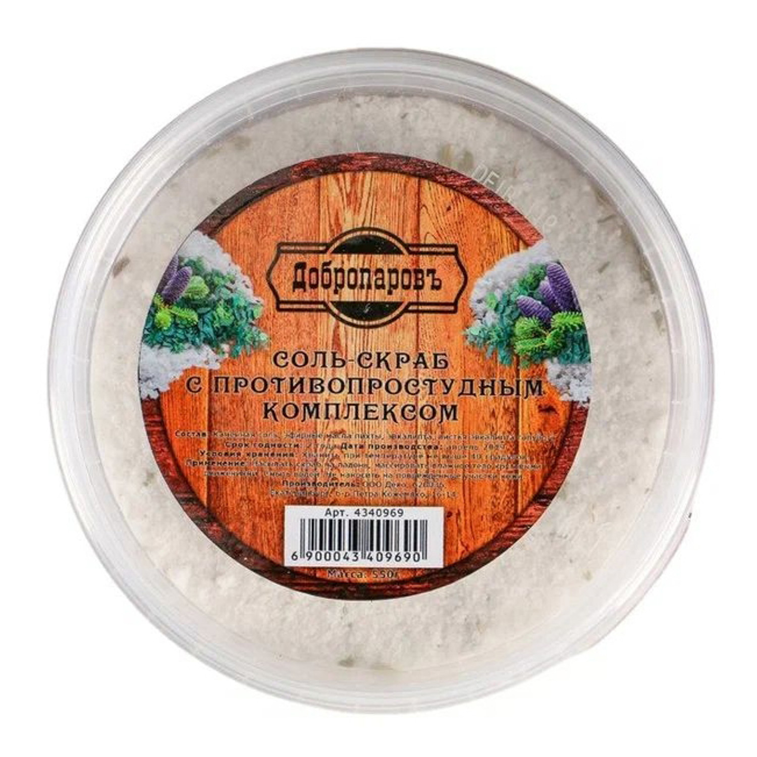 Солевой скраб "Добропаровъ" из белой каменной соли с противопростудным комплексом, 550 гр 43409
