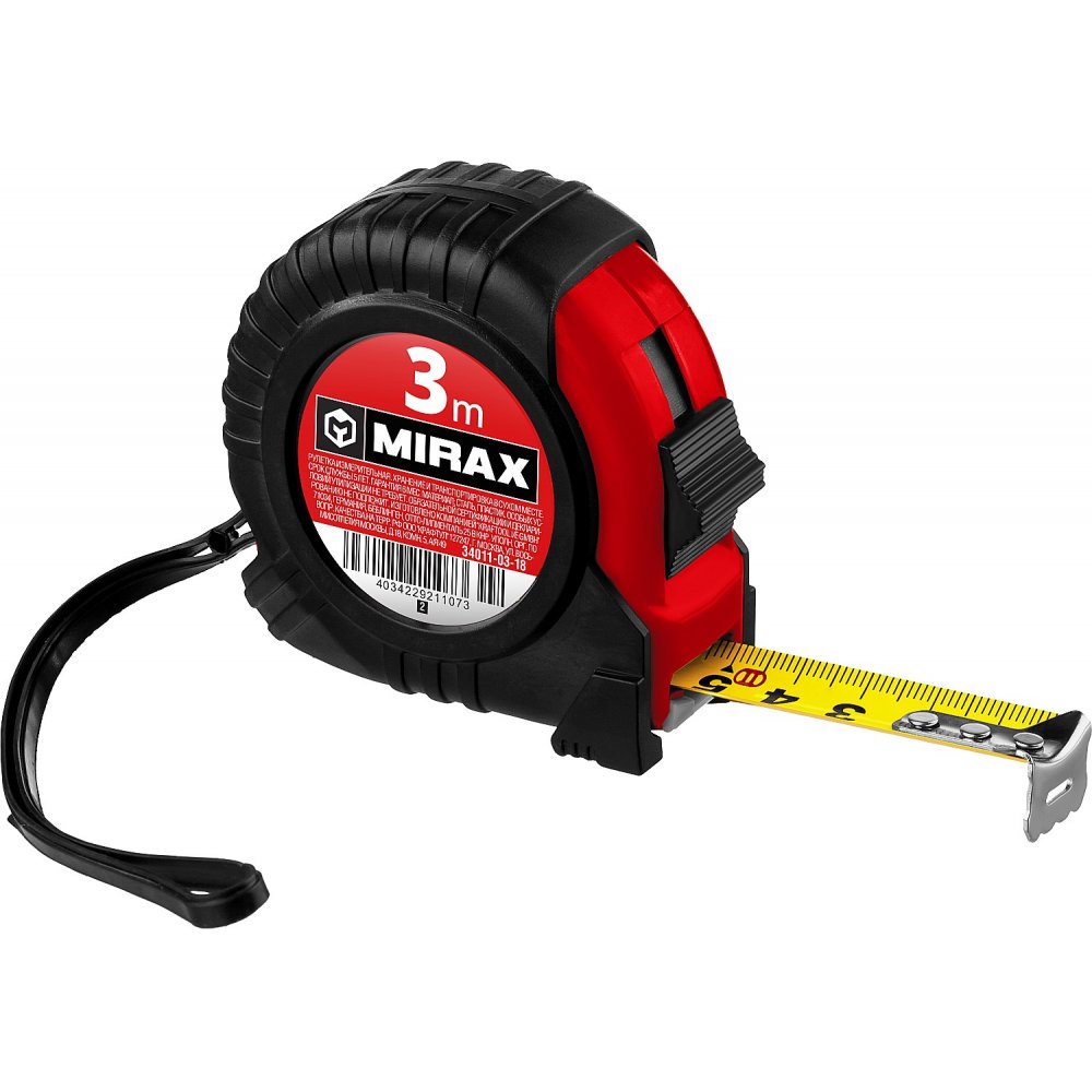 Рулетка MIRAX, 3 м х 18 мм, обрезиненный корпус