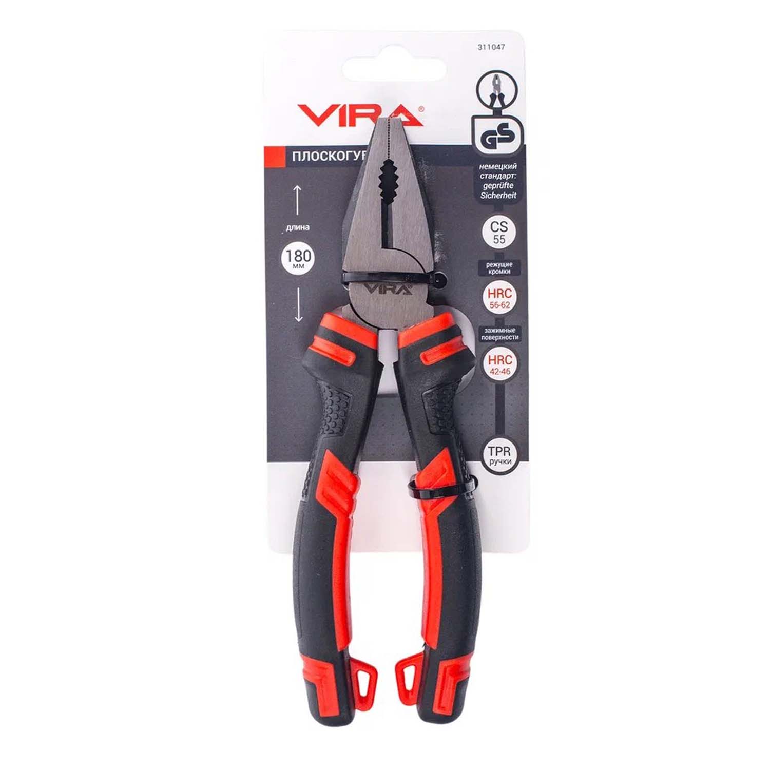 Плоскогубцы 180 мм VIRA произведены под внимательным контролем твердости зажимных поверхностей и режущих граней. Для рабочей части была использована высококачественная сталь, а для рукояток применена новое покрытие, которое позволяет работать без мозолей.