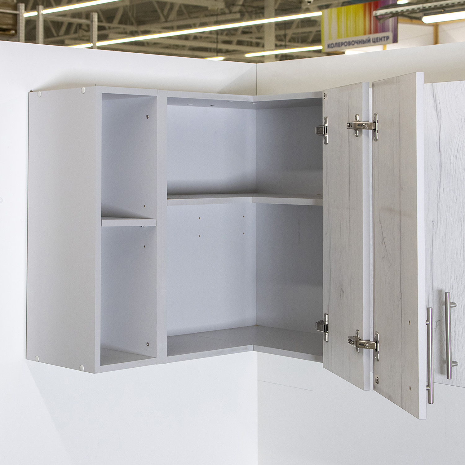 Шкаф навесной угловой 600х600 мм BROZEX-WOOD Camellia, с двумя дверцами, серый / юта