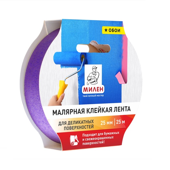 Лента клейкая малярная для деликатных поверхностей "Обои" 25мм х 25м сирен. MDP025K "МИЛЕН" *1/72