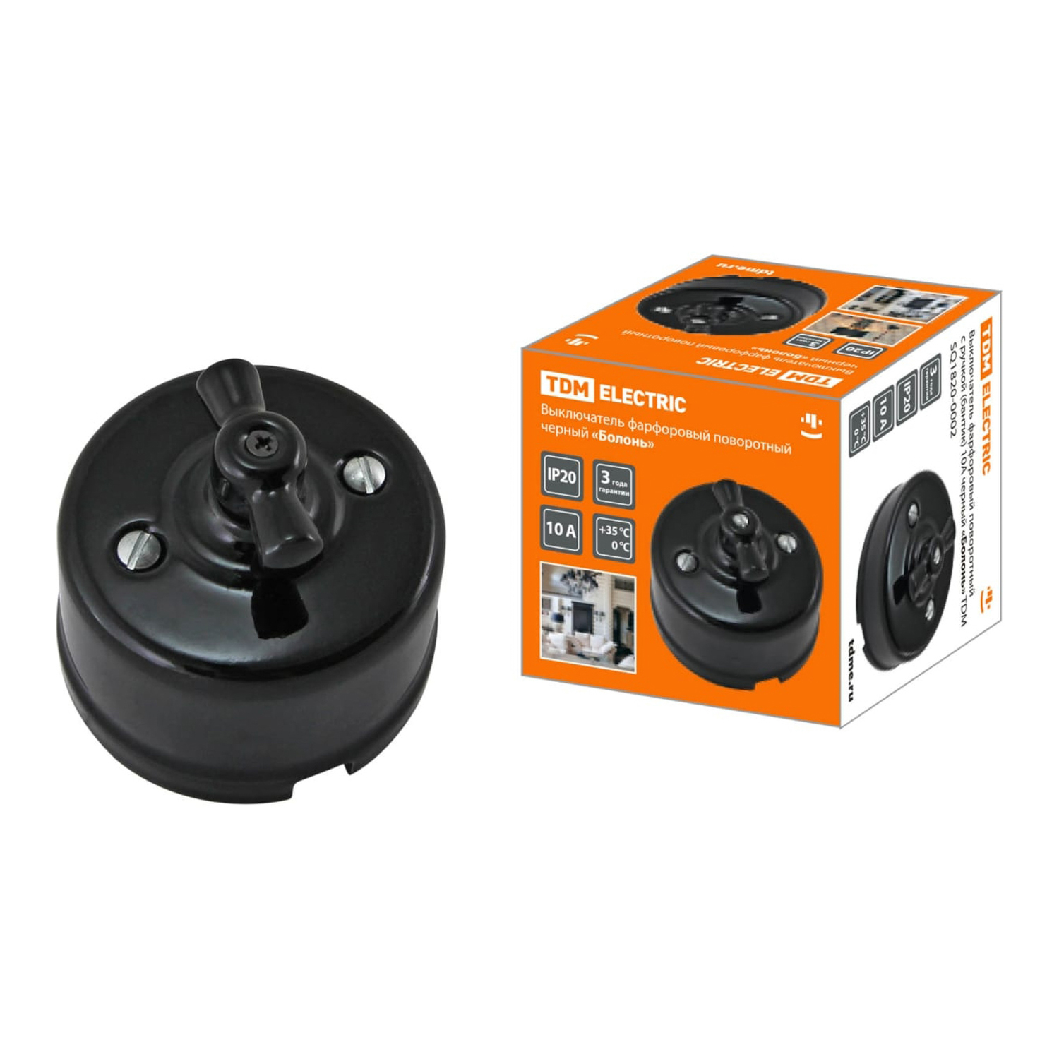Выключатель фарфоровый поворотный с ручкой (бантик) 10А черный "Болонь" TDM SQ1820-0002 *1