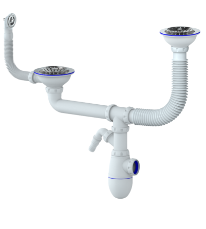Сифон для двойной мойки разноуровневый