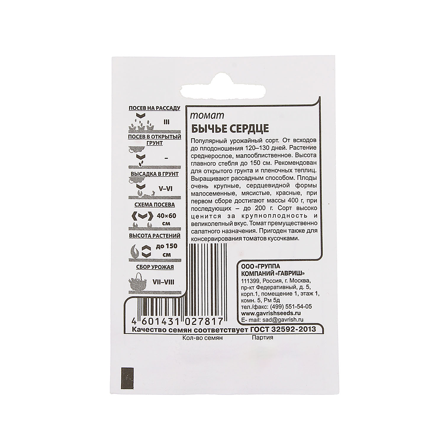 Семена Томат Бычье сердце красное 0,1гр Гавриш БЕЛ *20/500
