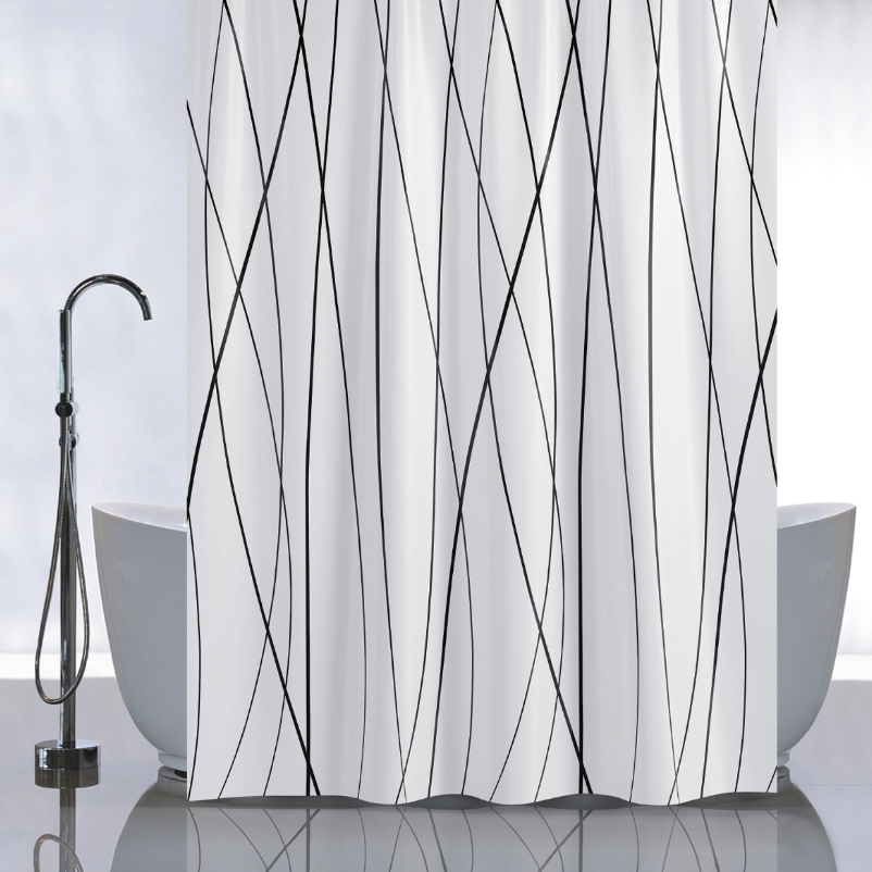 Штора для ванной "Санакс" п/эстер 180*180см "Черные линии" без колец 01-96 *1/24