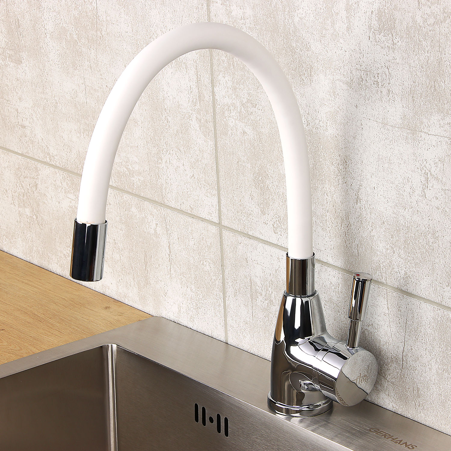 Смеситель для кухни FLOE FK234-DW с гибким изливом (белый) *1/10