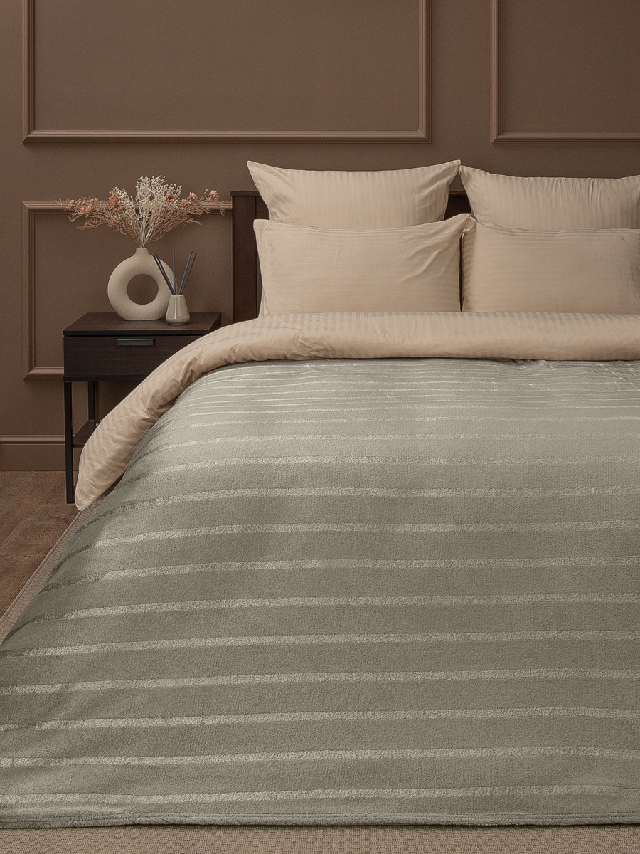 Плед 150*200см фланель однотонный страйп серо-бежевый TF FNS BE-GY3 006/1520 NC Absolute *1