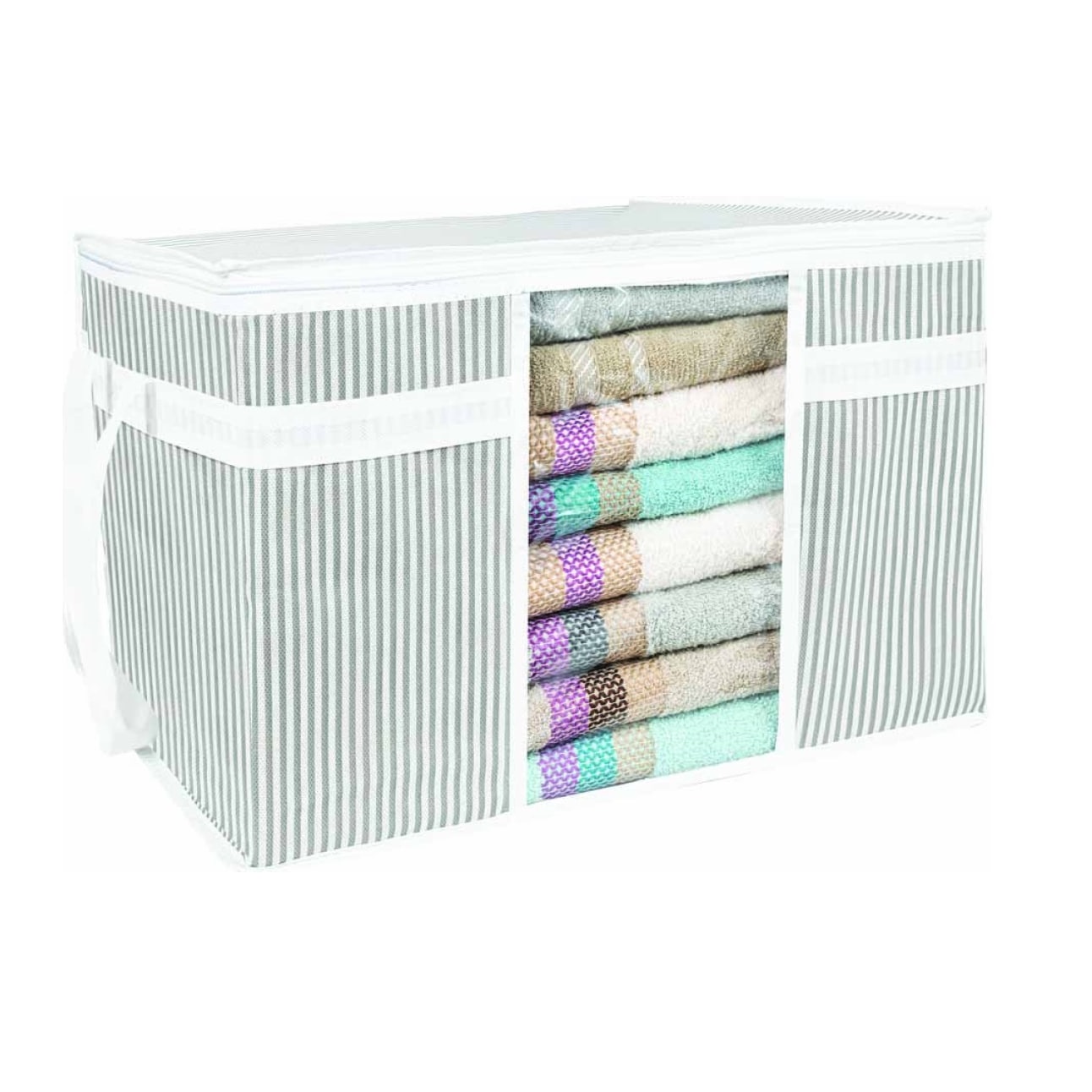 яяяКороб для хранения нетканый материал "LINE" 750Х400Х400мм с крыш. окном Светло-сер 411263030*1/24