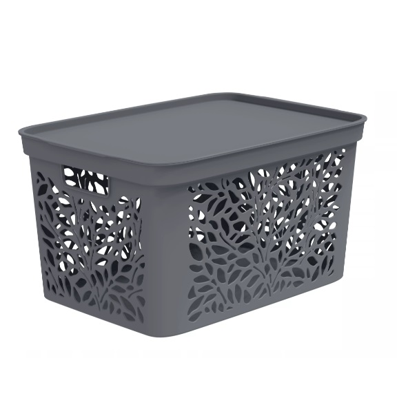 Корзина для хранения пластм. "Leaves" 463х326х256мм с Крышкой 30л Серый арт.83901("Полимербыт")*1/10