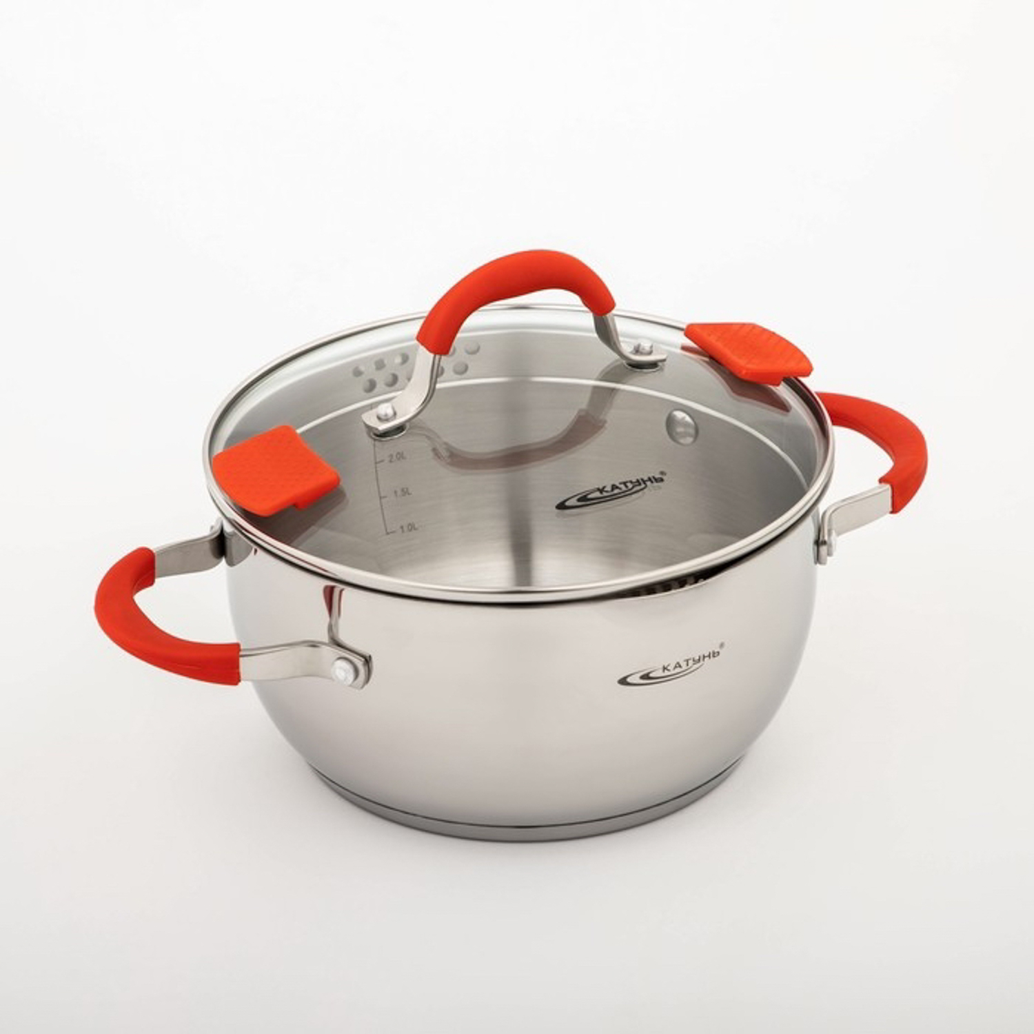 Кастрюля нерж. "Катунь" "Аврора" 4,0л d22см термораспред. дно, Стекл.кр., силик.руч. КТ07-D-22*1/4