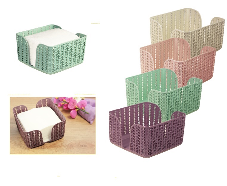 Салфетница пластм. "Вязание" 14,5х14,5х8,5см Чайная роза М1193 ("М-Пластика") *1/16