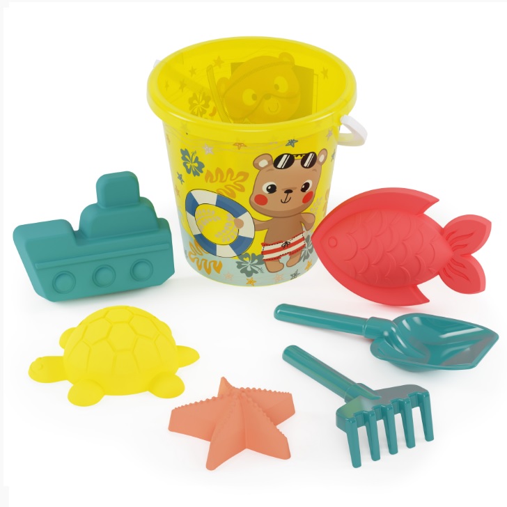 Набор Детский д/песка пластм."Пляжный сезон" (Ведерко, лопатка, грабли,4 формочки) М8548 *1/16