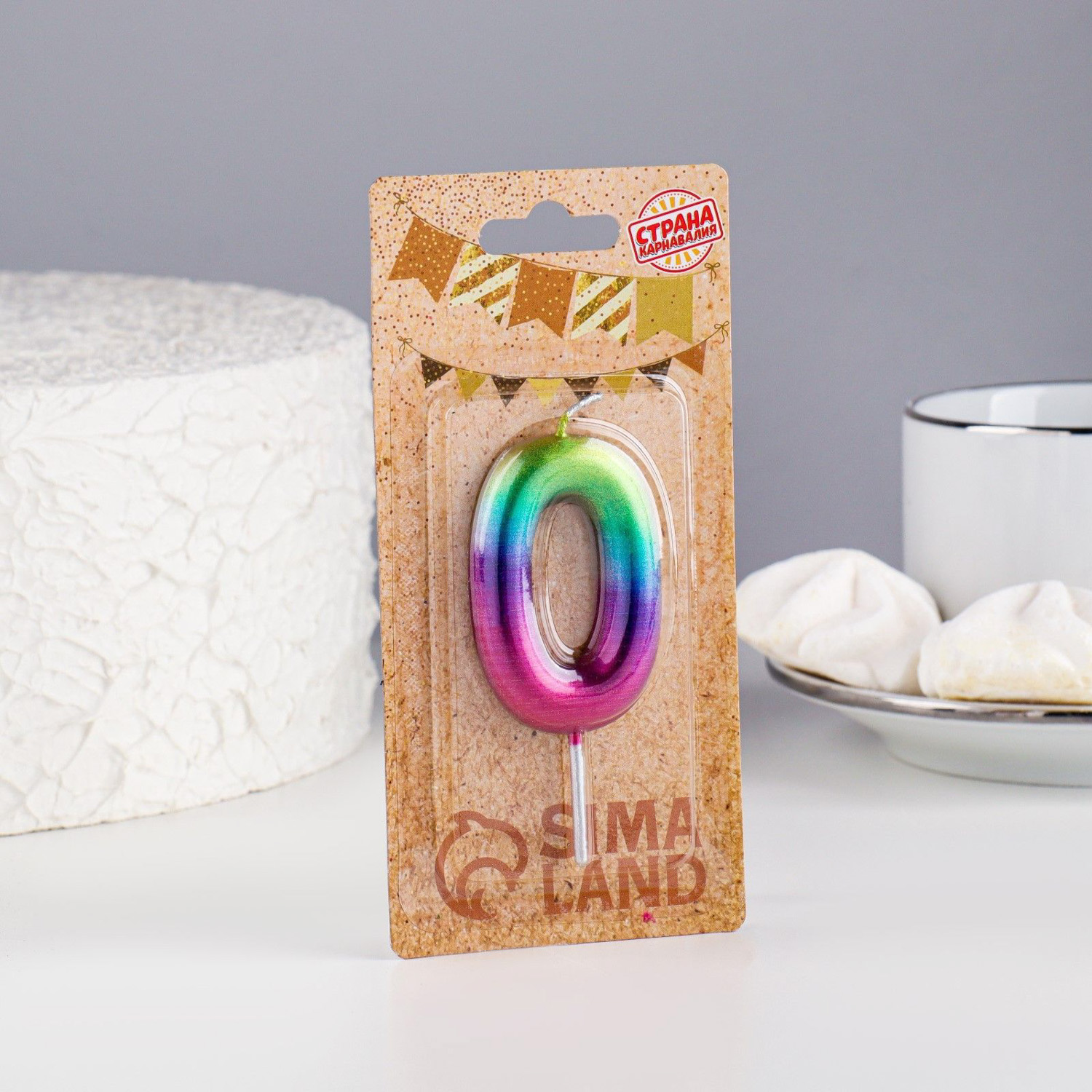 Свеча в торт "Акварель", цифра 0, 6 см 120322