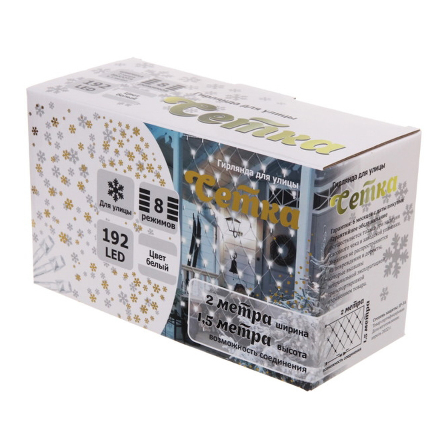 яяяГирлянда для улицы СЕТКА ш2,0* в1,5 м 192 ламп LED, прозр.пров, 8 реж, Белый (возможность соединения