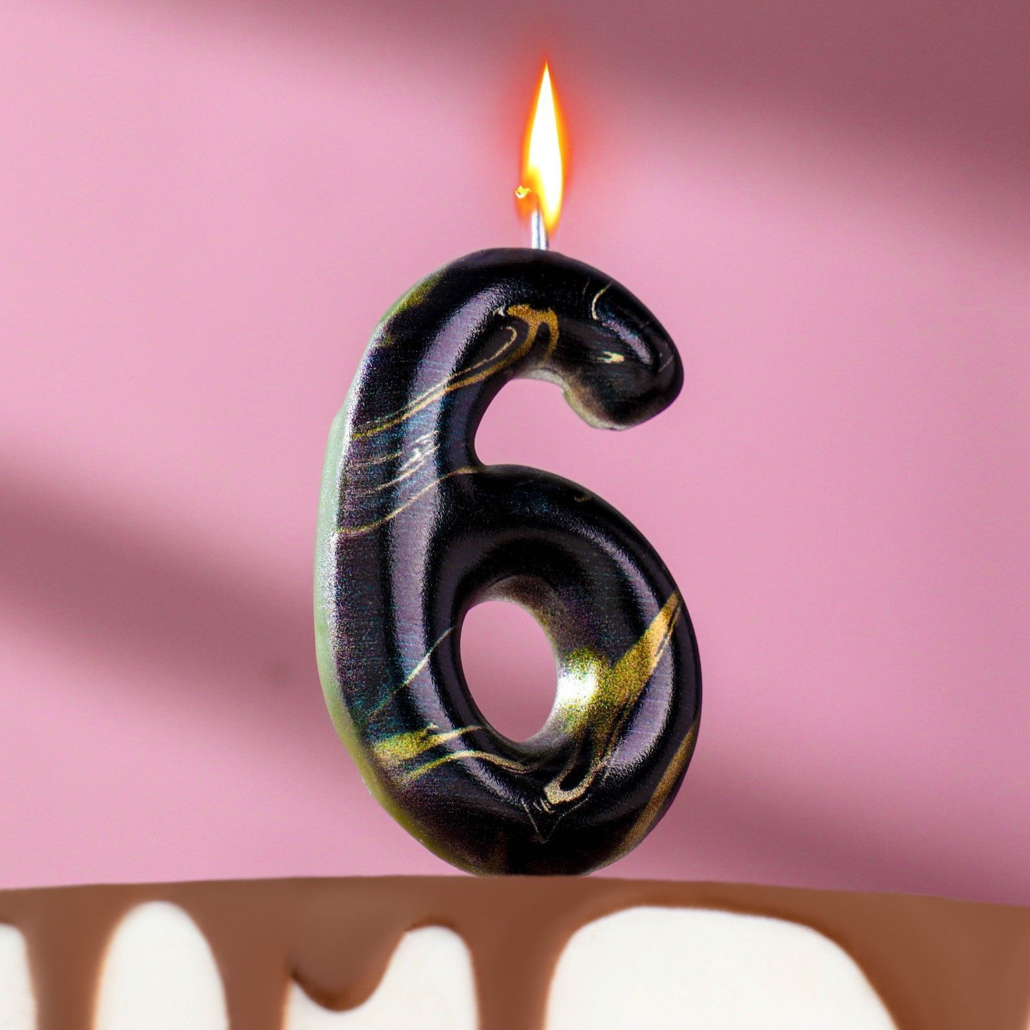 Свеча в торт "Черный мрамор", цифра "6", 8 см 6990860