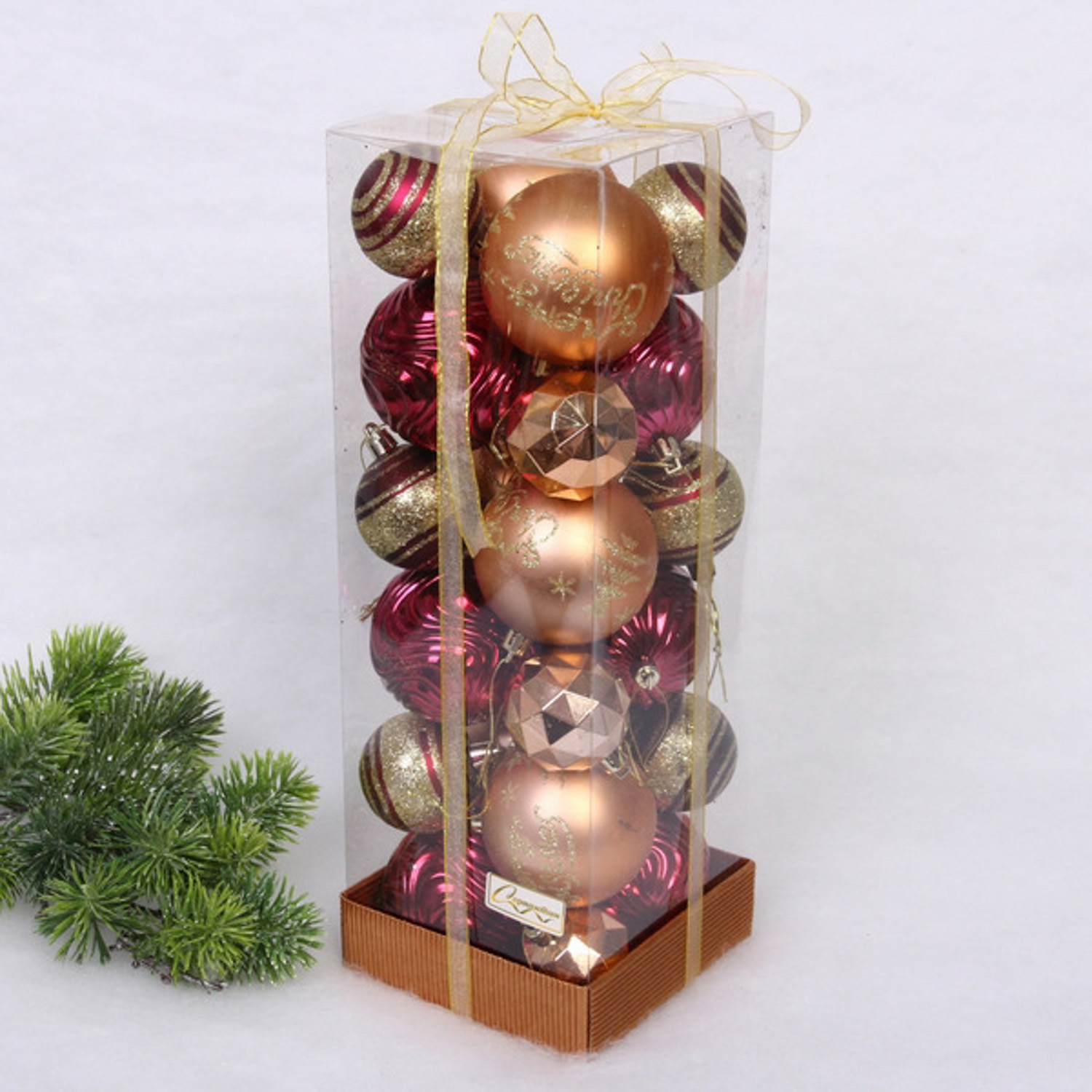 Набор шаров "Winter miracle" 7 см + 5 см (24 предмета), Рубин/Шампань