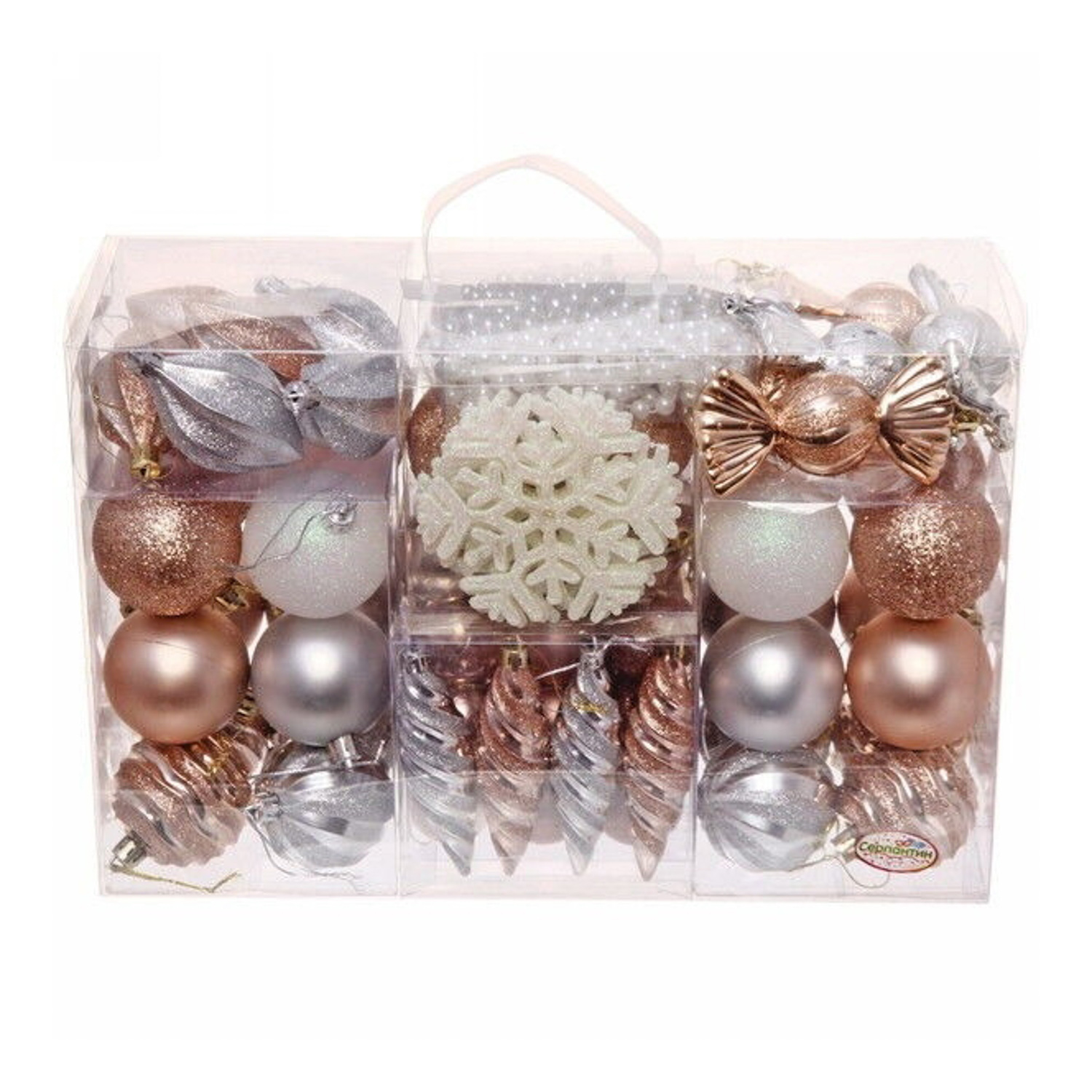 Набор украшений "Волшебный вальс" 6 см (83 предмета), шампань/серебро/белый