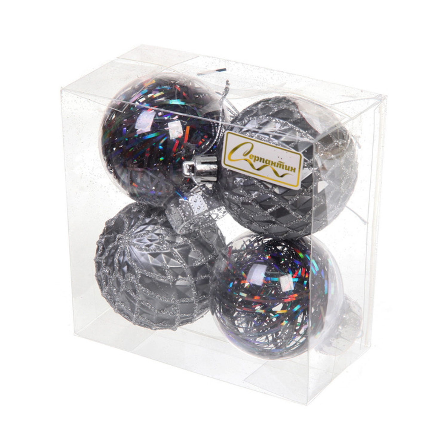 Новогодние шары 6 см (набор 4 шт) "Яркая метель", графит/серебро