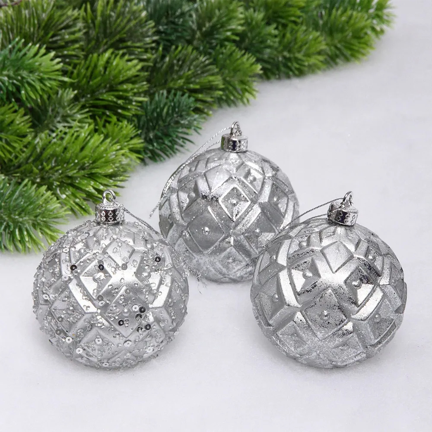 Новогодние шары VERSAILLES "Калипсо" 8 см (набор 3 шт), Серебро