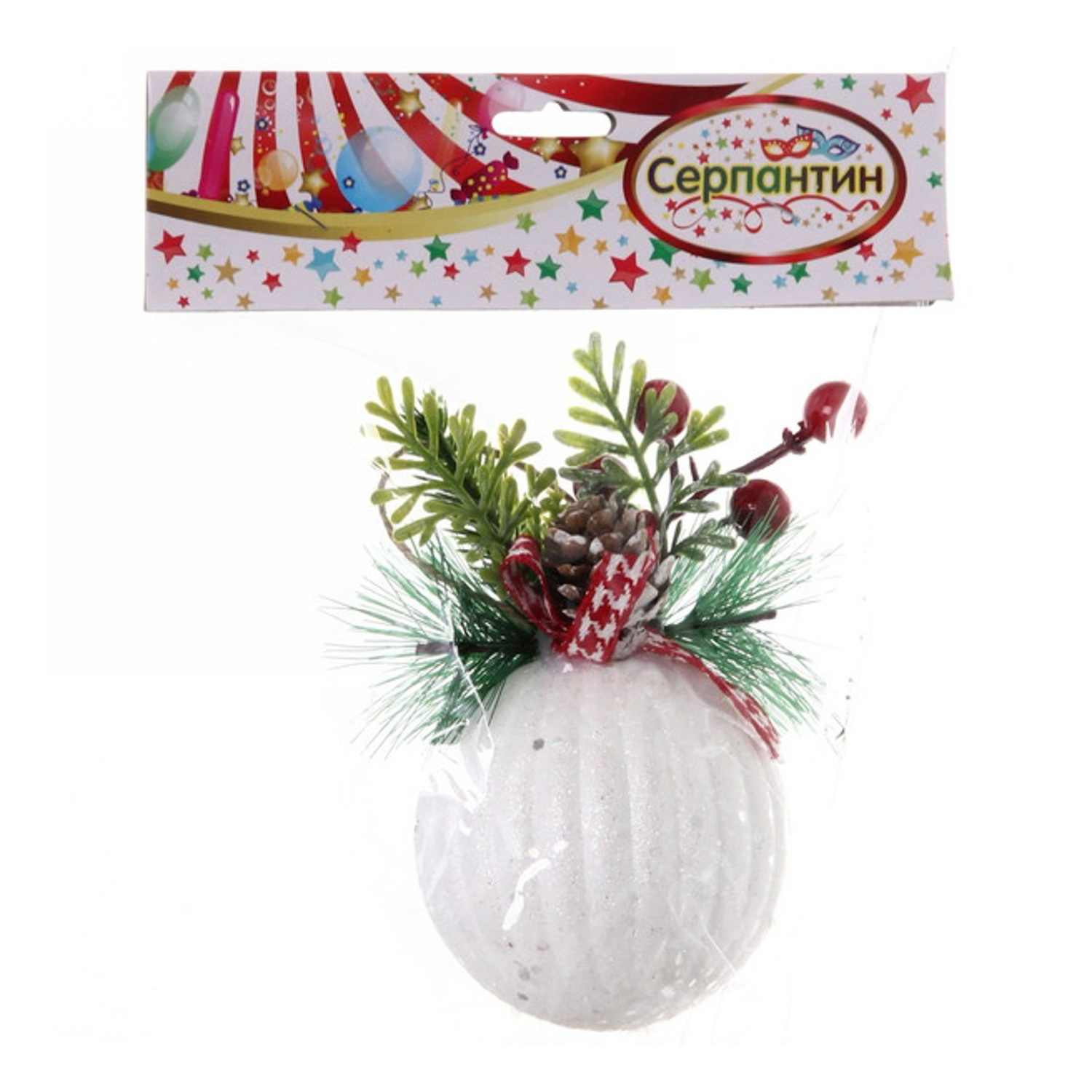 Новогодний шар "Лесная шишка", диаметр 8 см, белый