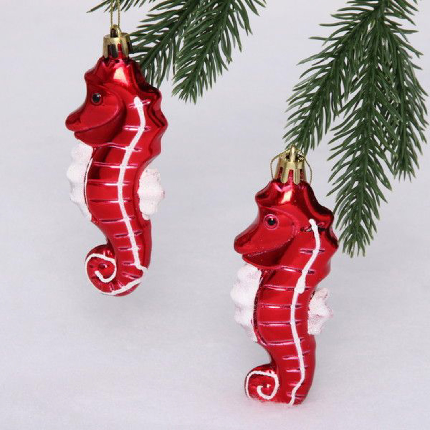 Елочные игрушки "Морской конек" 10,5 см (набор 2 шт), Красный
