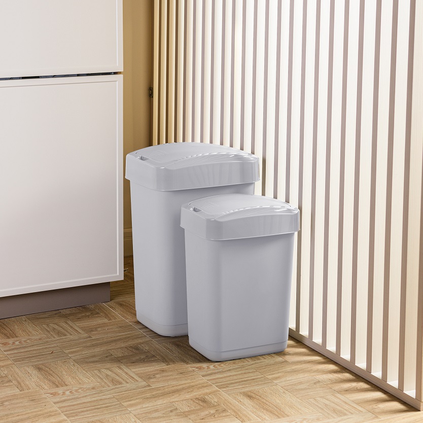 Контейнер д/мусора пластм. с откидной+"плавающей" крышкой 25л "Step" СерыйSC480711025 "Spin Clea"1/4