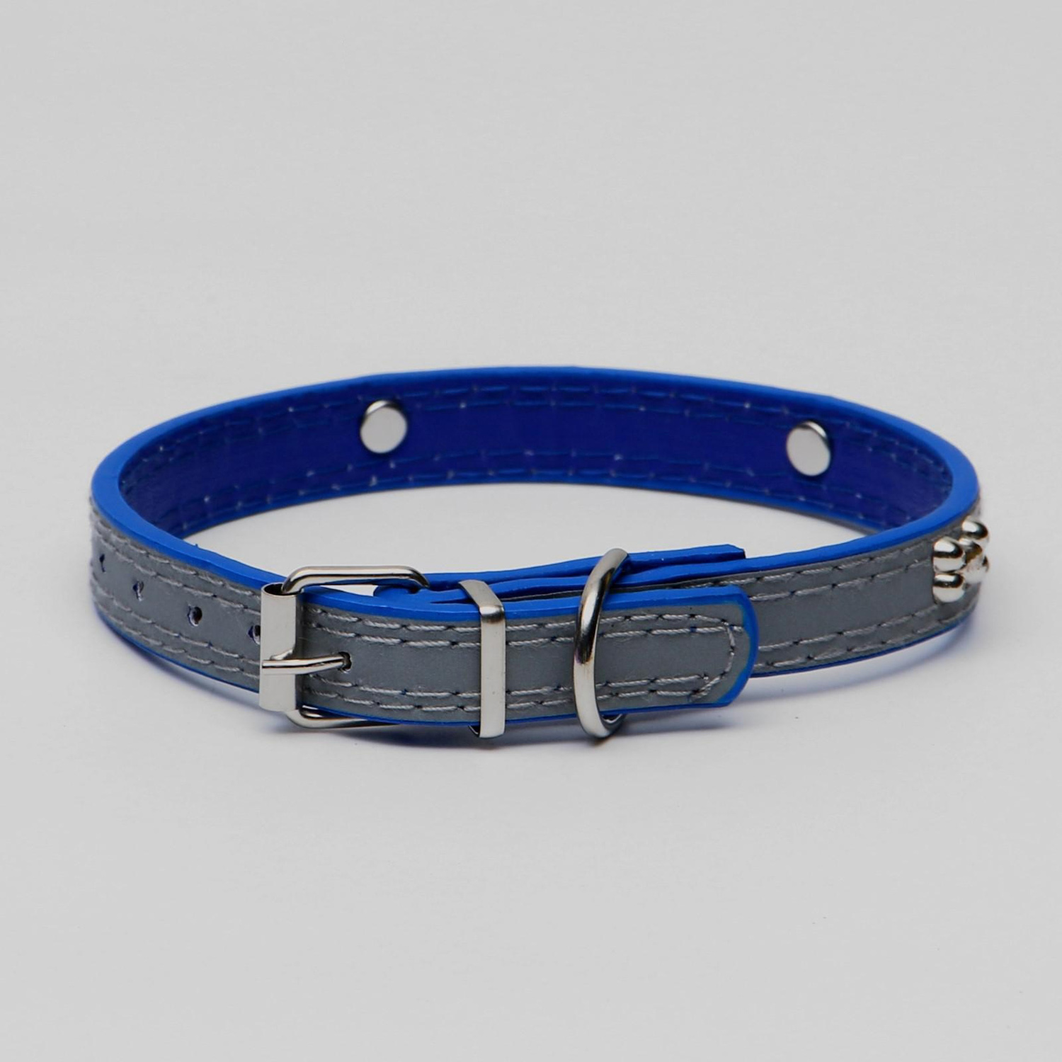 Ошейник со светоотражающий полоскрй и косточками 37х1,3 см синий 1041440