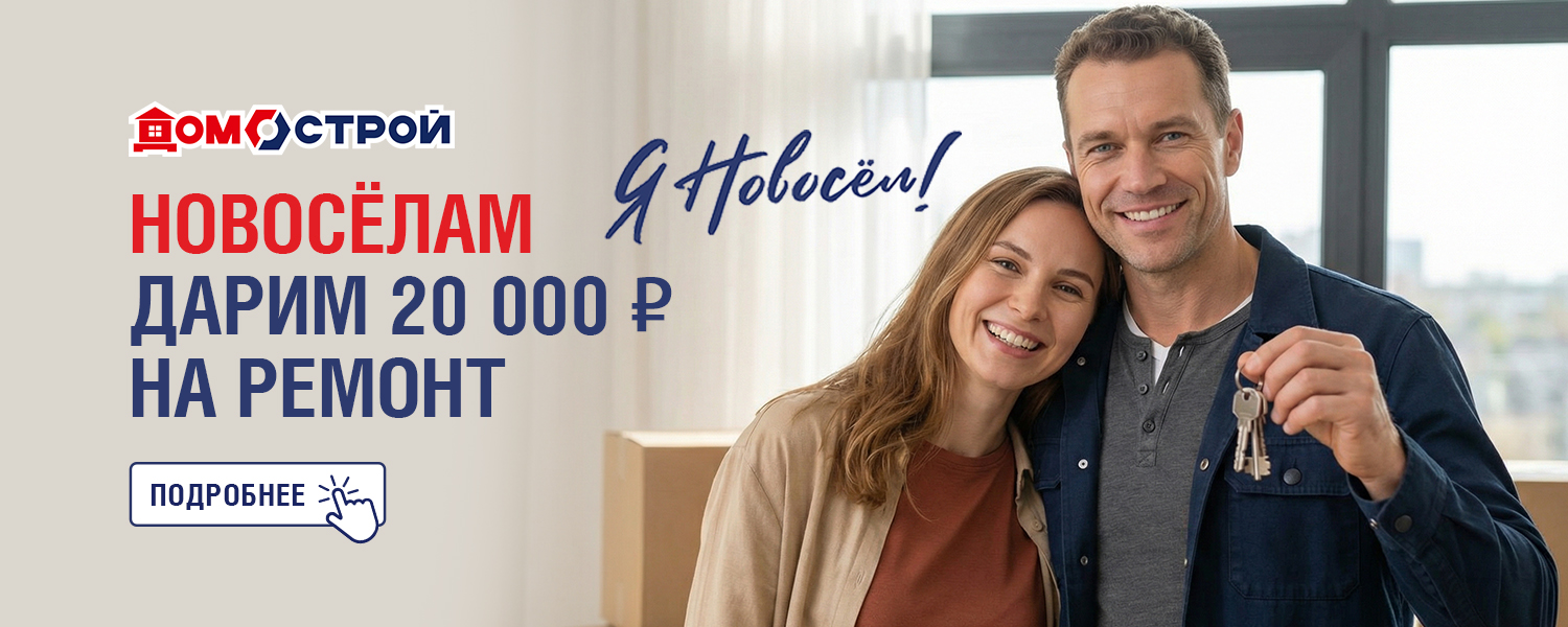 Дарим новоселам купон на 20 000 рублей! Если недавно вы стали обладателем нового жилья, у нас для вас отличные новости! ДомоСтрой дарит вам купон на 20 000 рублей, которыми можно оплатить до 20% от суммы покупки. Тратить средства можно в течение 12 месяцев со дня получения купона — сумма будет списываться после каждой покупки.
