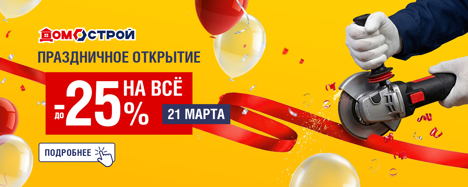 Празднуем открытие нового магазина ДомоСтрой в Арамиле 21 марта по адресу КП Славный зд. 1 на Арамильском тракте! И в честь этого праздника дарим скидку до -25%.